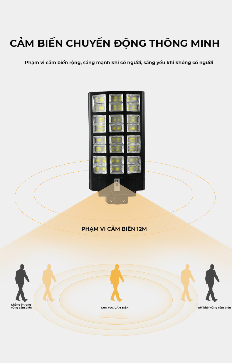 - Chế độ cảm biến chuyển động thông minh, khi có người đèn sẽ sáng 100%, khi không có người đèn chỉ sáng 30-40%