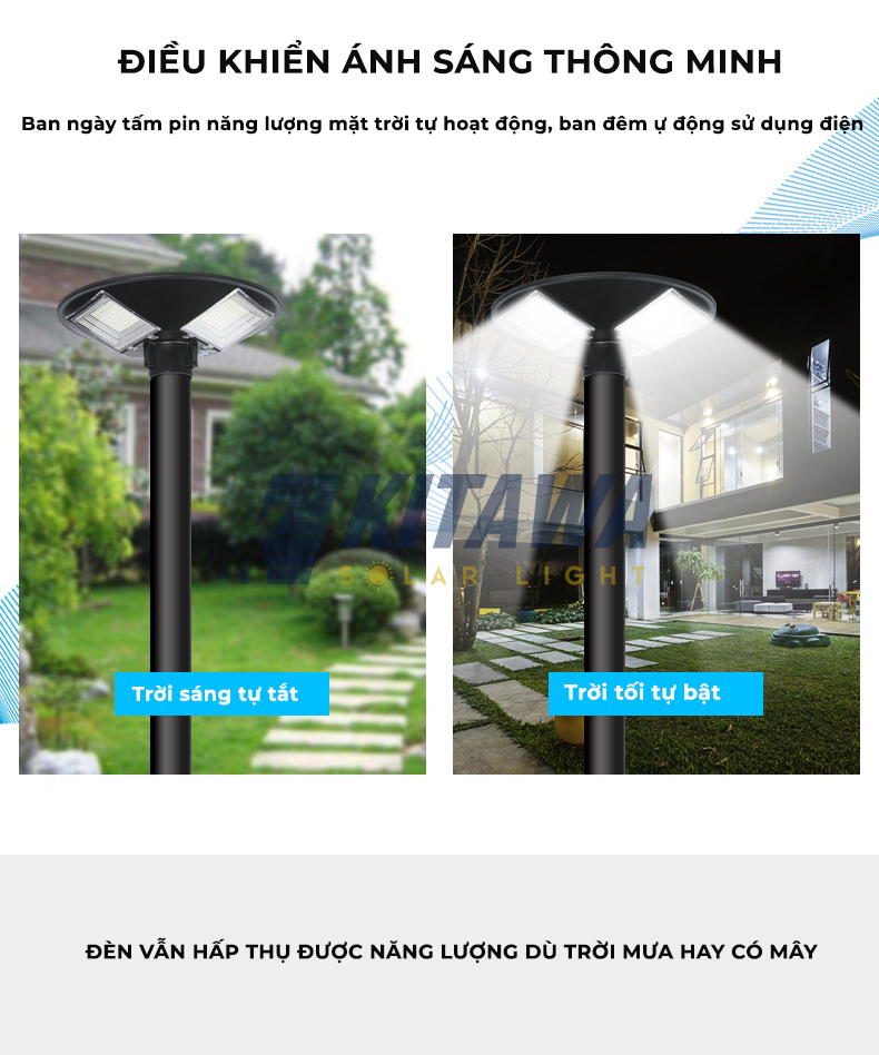 - Tự động sáng khi trời tối, tự động tắt khi trời sáng.