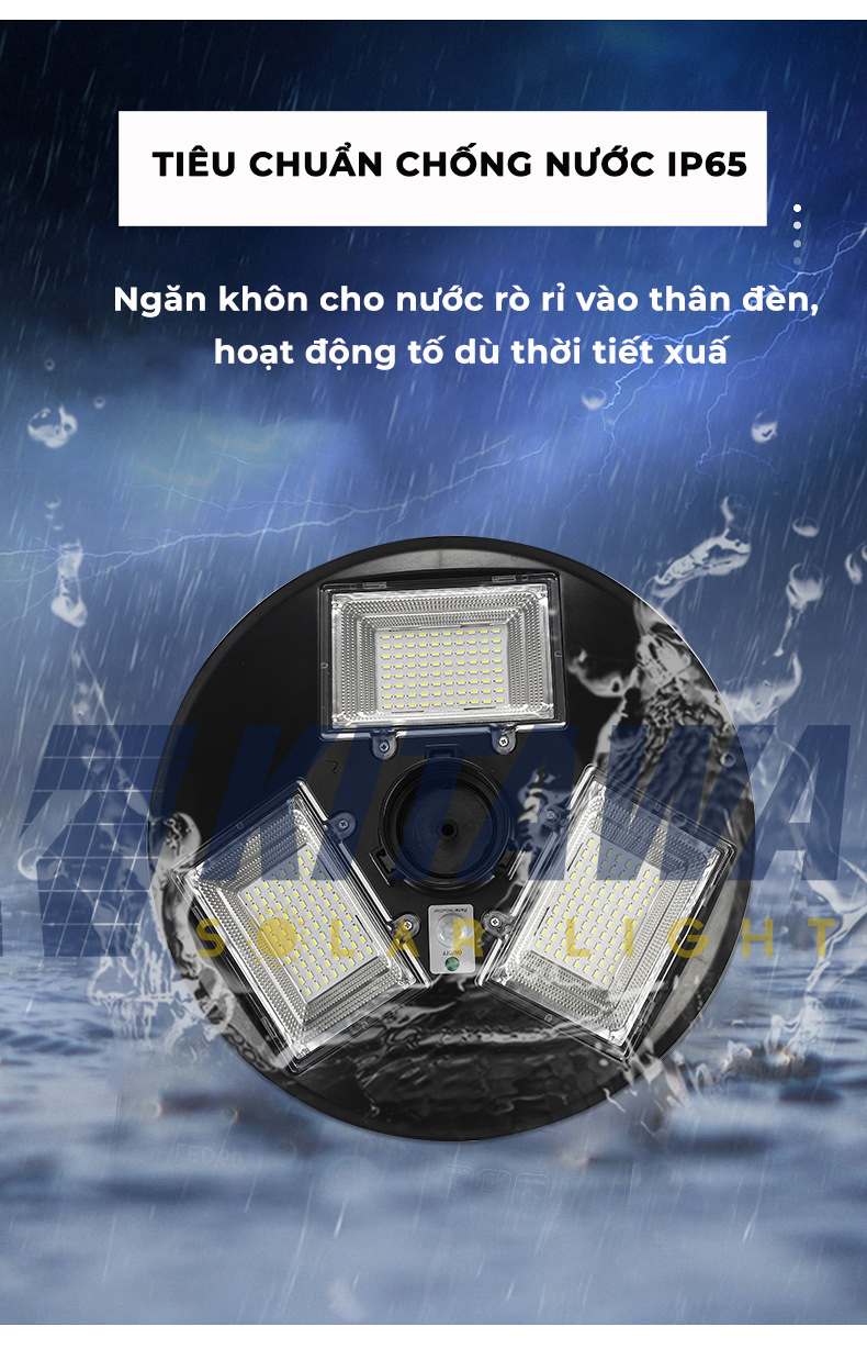 Đèn đĩa bay năng lượng mặt trời Kitawa 150W UF1150 được trang bị chuẩn IP65 có khả năng chống bụi và chống nước vượt trội để bạn yên tâm lắp đặt ngoài trời và sử dụng trong mọi điều kiện thời tiết