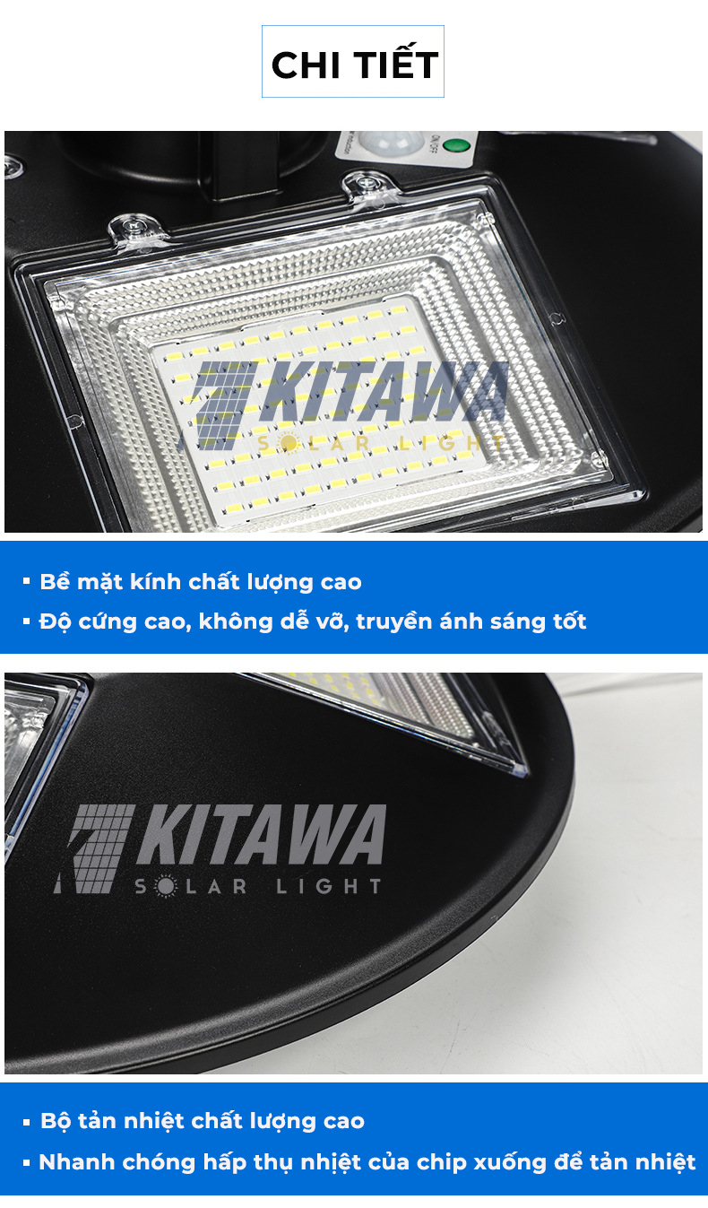 - Đèn đĩa bay năng lượng mặt trời Kitawa 150w UF1150 được làm bằng chất liệu kính cường lực bền chắc, không tạo ra mảnh vỡ thủy tinh.