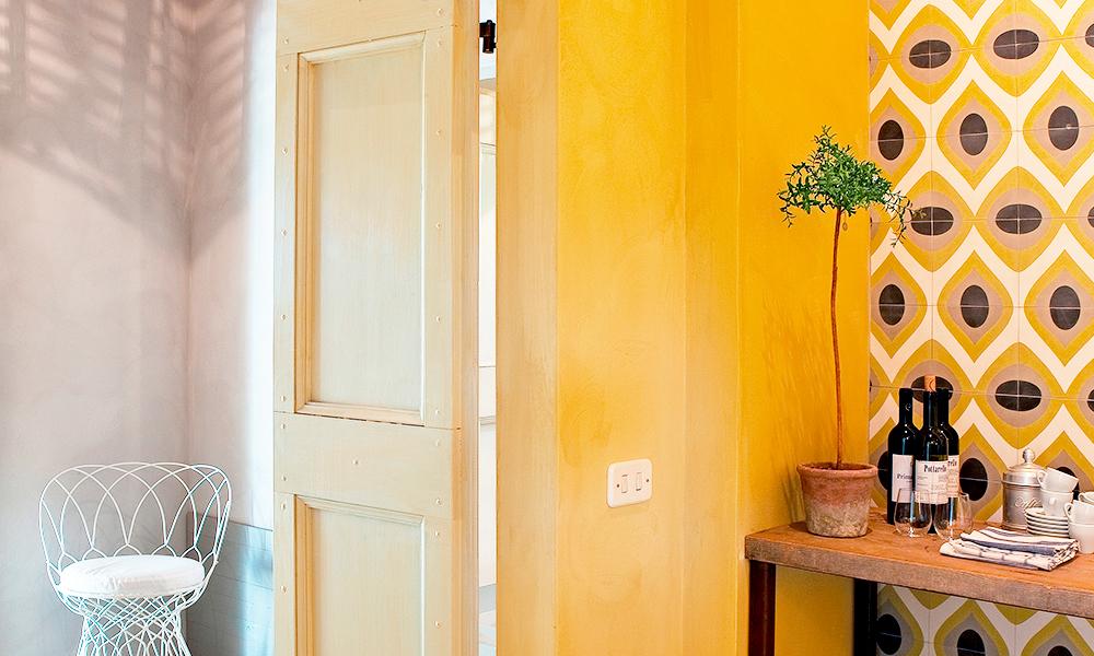 Tạo điểm nhấn cho căn phòng bằng cách sử dụng gạch trang trí với màu sắc và kích thước độc đáo.