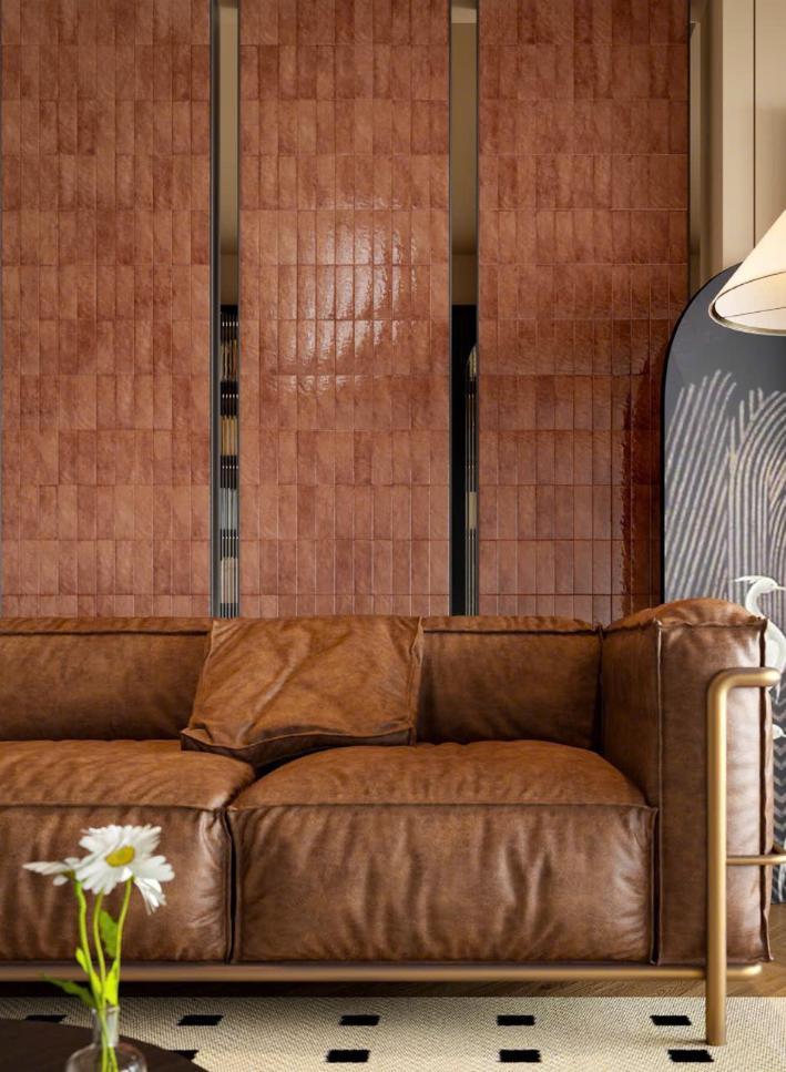 Gạch thẻ được làm từ chất liệu chính là gạch men – Ceramic, bề mặt bóng ,được ưa chuộng nhất trong khoảng thời gian gần đây.