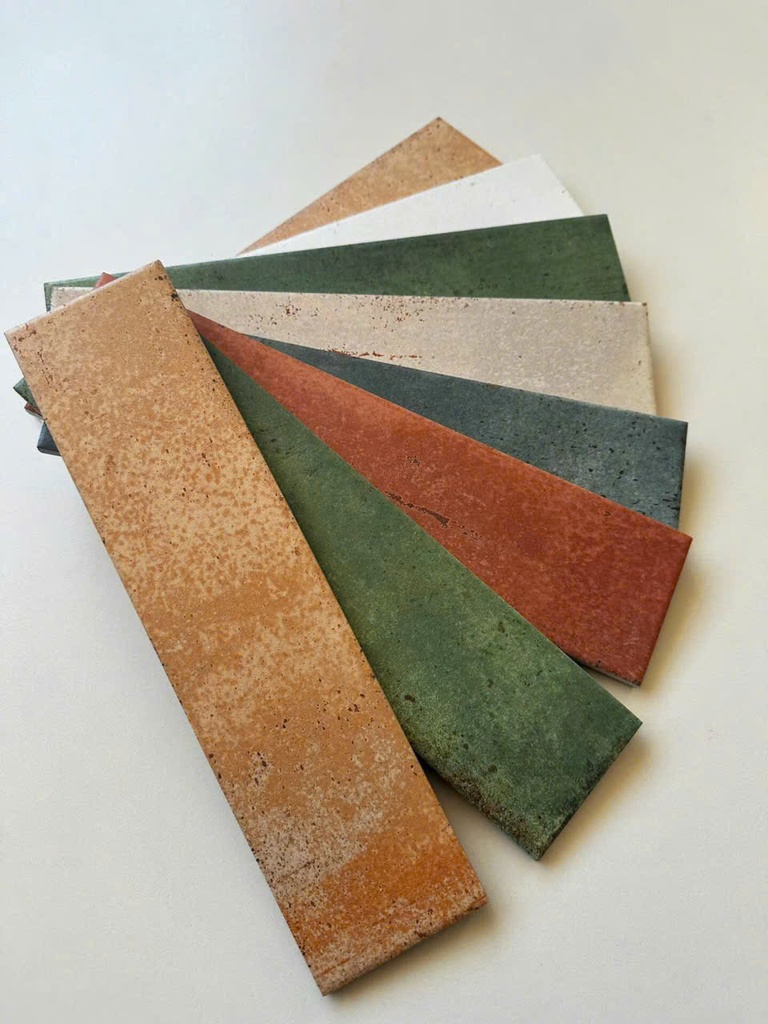 Gạch thẻ được làm từ chất liệu chính là gạch men – Ceramic, bề mặt bóng ,được ưa chuộng nhất trong khoảng thời gian gần đây.